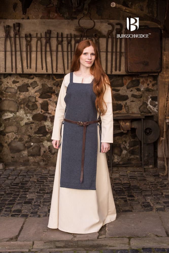 This Viking Hangerock Apron Dress is made from 100% uncombed cotton and when paired with an underdress (not included) creates a properly layered period Viking outfit. From Burgschneider of Germany.