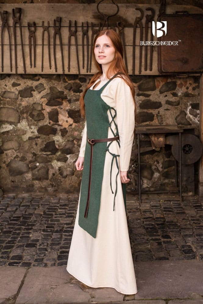 This Viking Hangerock Apron Dress is made from 100% uncombed cotton and when paired with an underdress (not included) creates a properly layered period Viking outfit. From Burgschneider of Germany.