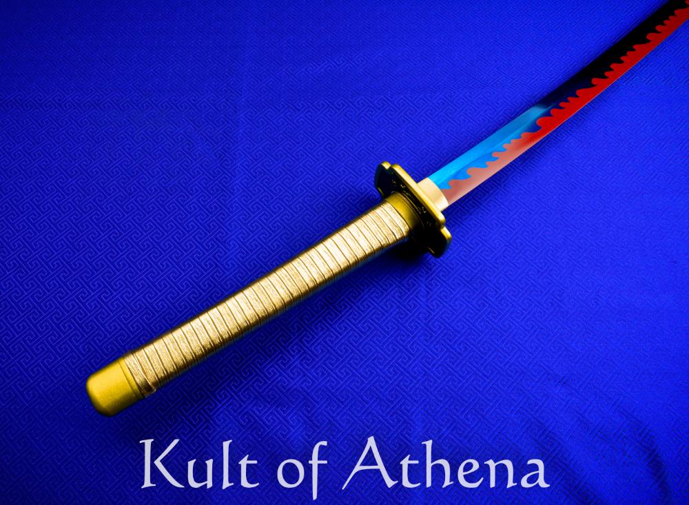 The legendary sword of Yoriichi Tsugikuni from Demon Slayer is faithfully recreated by Hanbon Forge as a fully functional katana crafted from premium T10 high-carbon steel. Far beyond the more common cosplay or display pieces, this version is built to a battle ready and fully functional standard — ideal for serious collectors, cutting practitioners, and fans who want a sword that channels the legacy of one of the greatest demon slayers in history. Weighing around 2.5 pounds and with a balance point positioned just over 5 inches ahead of the tsuba, the sword delivers a commanding and responsive feel in hand, reminiscent of classical katana.