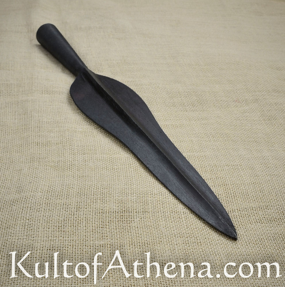 This spearhead is VERY good for the price! It is quite large and the socket diameter is perfect for thicker shafts. I cannot attest to the type of carbon steel that it is made of, but it seems to be well tempered. Overall I recommend this for those looking for an attractive, functional representation of an early iron age Celtic spearhead.