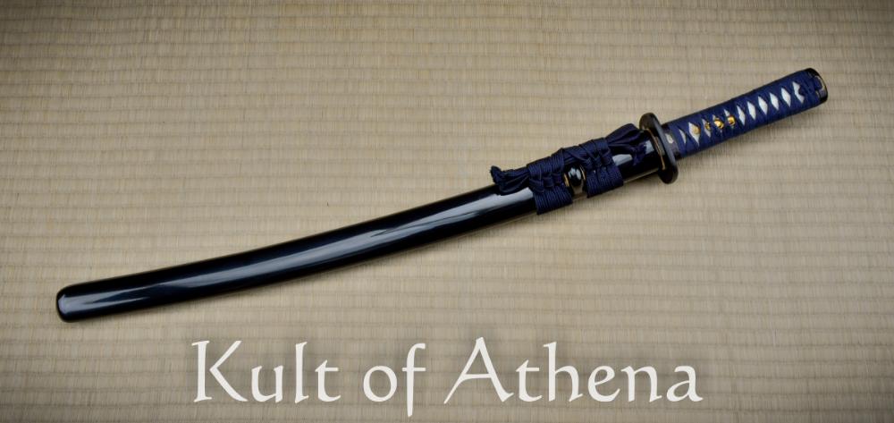 This Wakizashi from Hanwei features the frog prominently on its tsuba and koshirae fittings alongside lillies and water ripples – all detailed in an array of gold and silver over black iron. The blade is hand forged and the powdered steel is folded to produce thousands of layers within the steel, leaving a pattern like flowing water faintly running the length of the blade. A bo-hi groove runs the length of the blade, reducing its weight and creating the whistle-like Tachikaze sound as the blade cuts the air. The tip is fashioned in the form of the medium-length Chu-Kissaki shape. The habaki and seppa blade fittings are fashioned from brass.