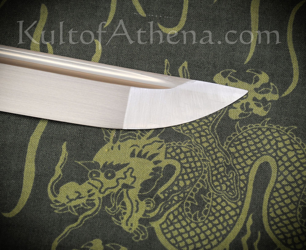 This version of the Mokko Renshu has a long bo-hi groove intended to reduce the weight of the sword along its thickest point whilst sacrificing little durability. This groove creates a more audible whoosh when the sword strikes – the variable sound of this Tachikaze sword wind can be used as a tell on the angle of cut to trained ears.