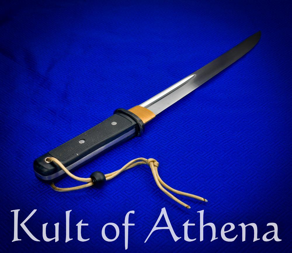 Cool blade–I really like it. Might have to get the wakizashi as well. Excellent handling and a great cutter even though it is a stabby design. Nimble handling; grip is squared-off design but very comfortable and secure in the hand. I like the sheath as well.