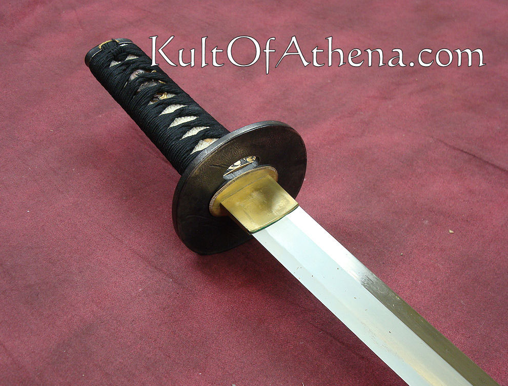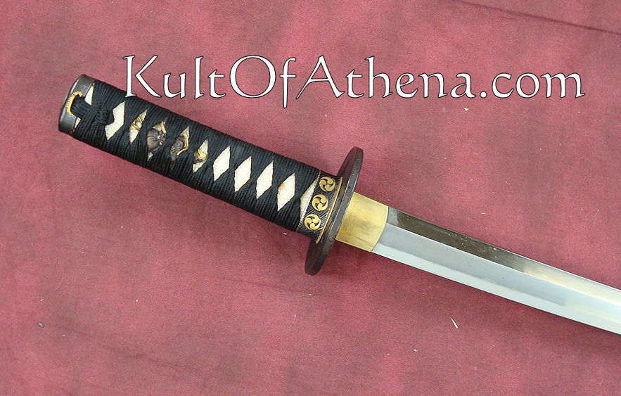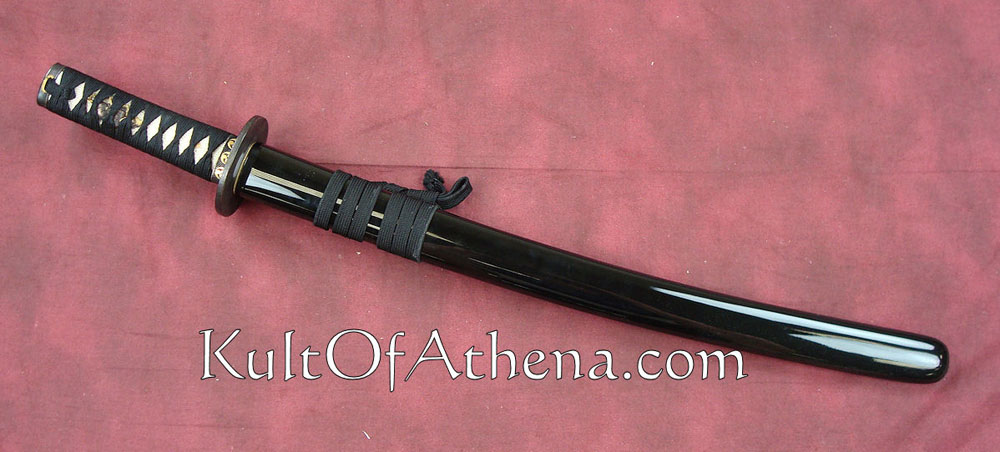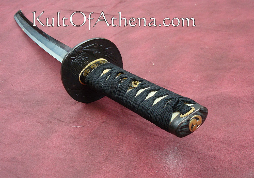 The Paul Chen / Hanwei Wind & Thunder Wakizashi is fitted with the black iron Raiden tsuba and Tomoe motif fuchi and kashira. The handle is wrapped in genuine same (ray skin) and the tsuka-ito is premium Japanese black cotton. The saya is done in a traditional black laquer and the sageo is also black cotton. This sword is an excellent choice for those intereseted in batto-jutsu. Features a sharpened high carbon steel blade.