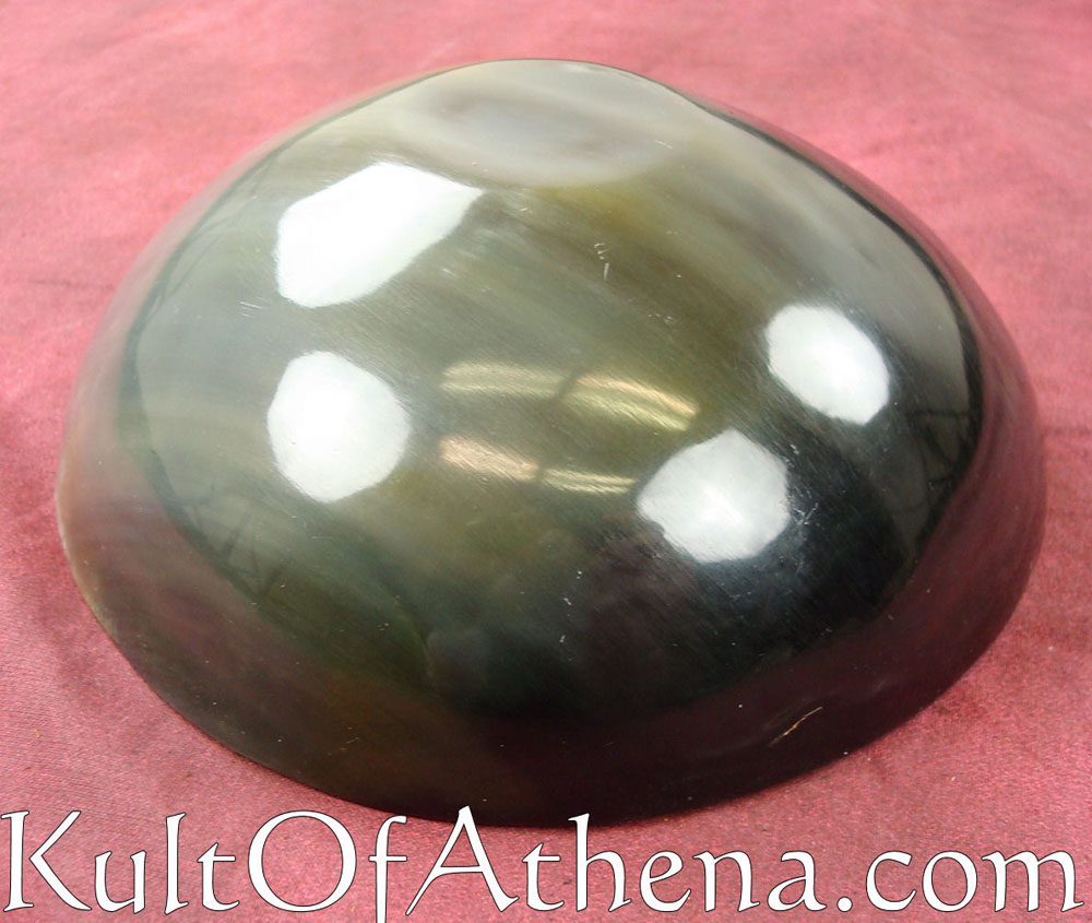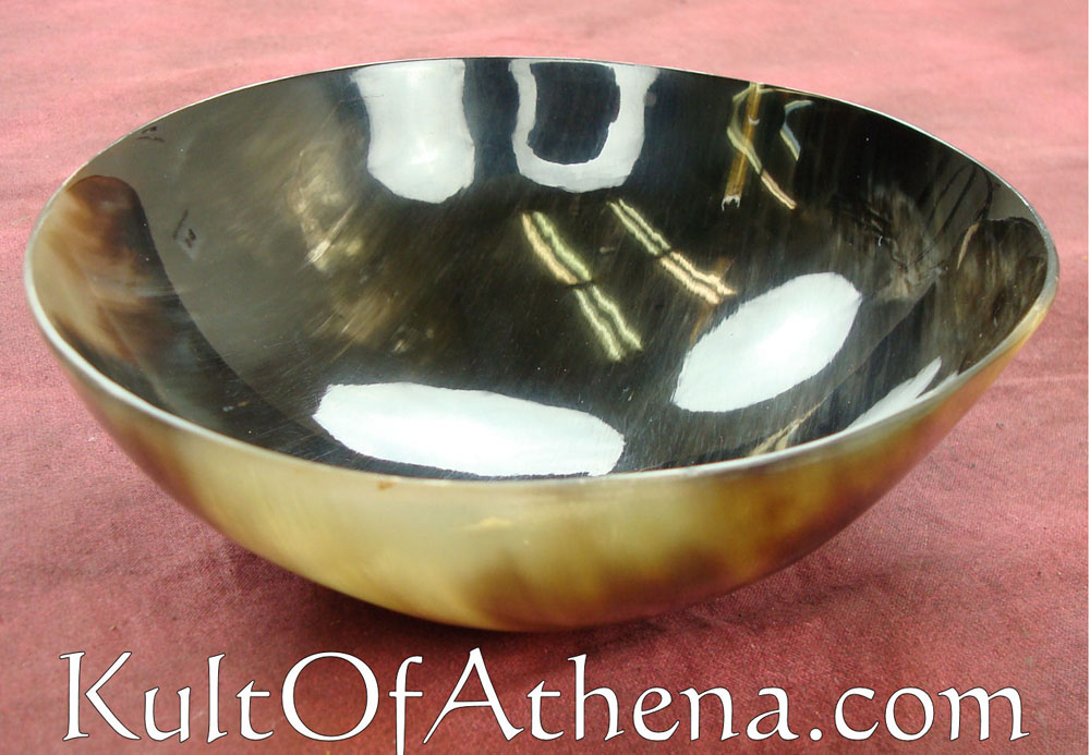 This bowl is made from a single piece of polished cow horn. Colors and patterns will vary.