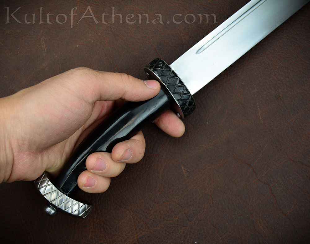 The blade plus the sheathe look great and the handle gripped nicely. That was where I noticed the biggest flaw of this dagger. The entire assembly shook it my hand. There is extra space between the parts and this just turned into a wall hangar unless I want to piddle around in the future and maybe make a new handle for it. Better this than something that cost me an arm and a leg.