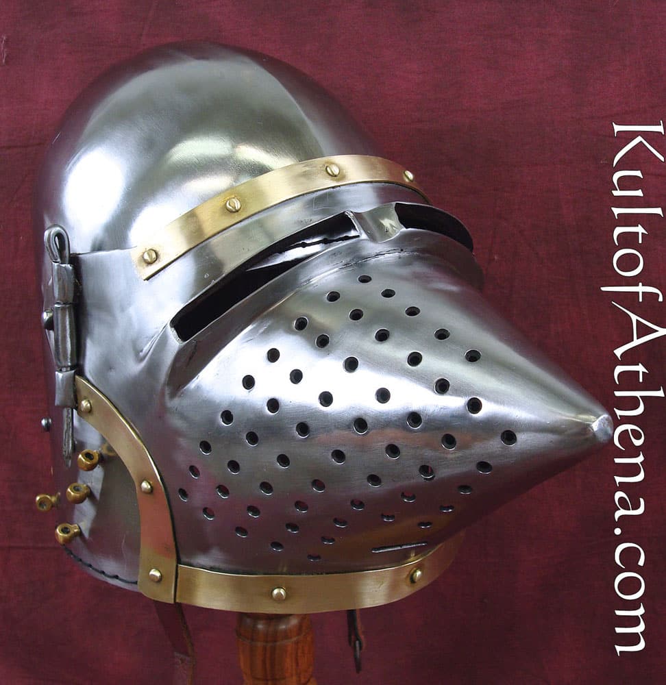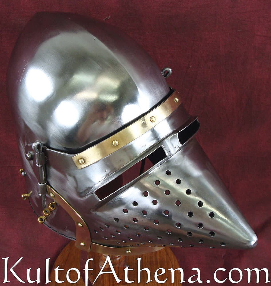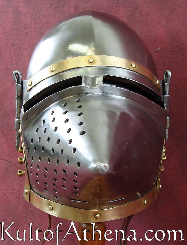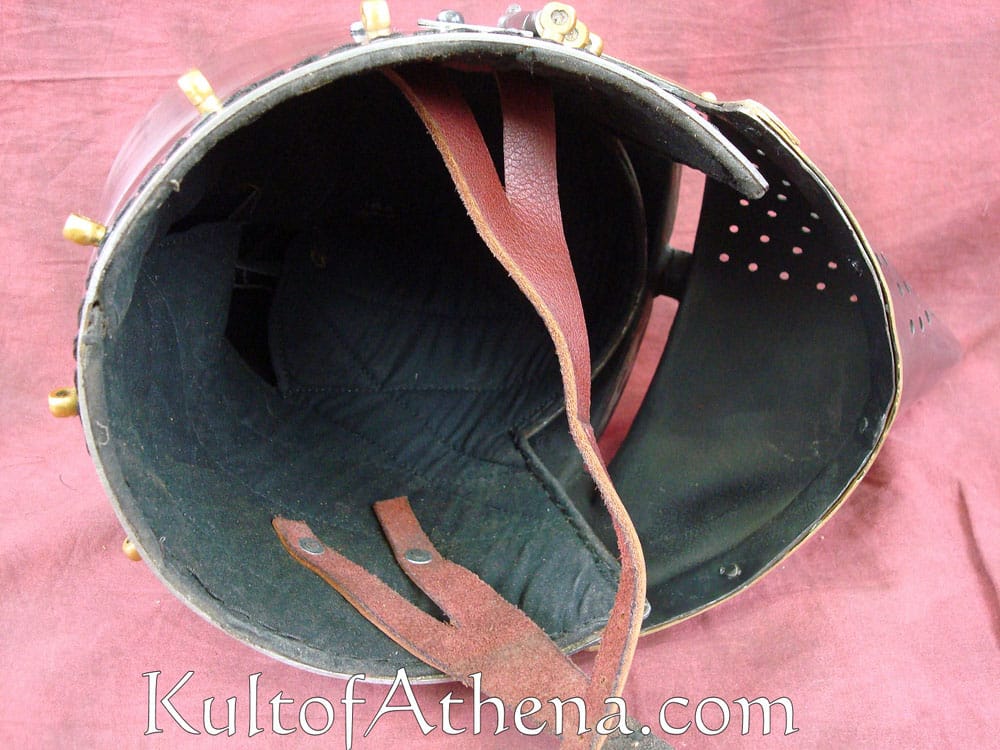 Modified I bought this helmet before I learned about period helmets . It is well made but has a raft of historical inaccuracies which I modified with many man hours of work . Vervailles in wrong place , facial opening wrong shape . I just saw the ” pig face ” model which looks historically correct with no modification. Ordered it !!
