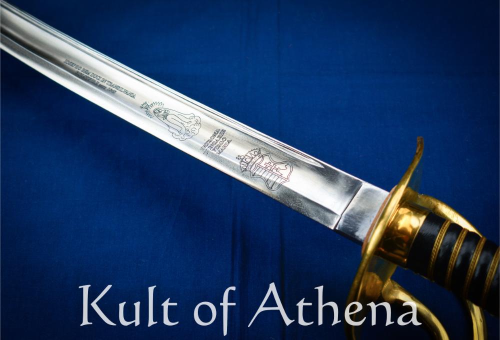 This saber is beautiful! But, it’s also kind of a beast to handle. I personally don’t recommend this for your first saber since it clearly isn’t designed to be a fencing weapon that you can practice your HEMA techniques with; it’s a strong, beefy sword that is clearly designed to cut and cleave from horseback with a very forward point of balance and hefty weight that’s almost three pounds. When swinging this around, you will definitely feel it in your arm and makes a great “workout” sword if you want to work on your arm strength.