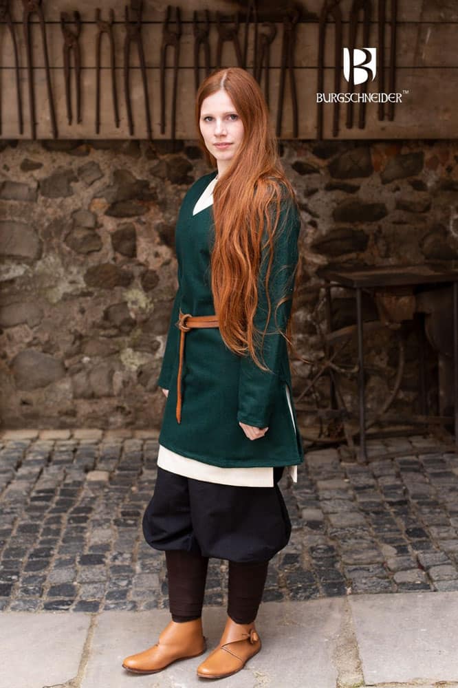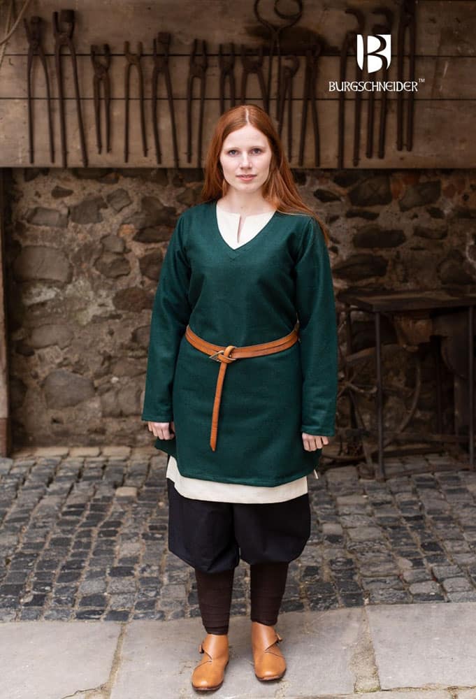 This long sleeve tunic is common to Northern European fashion from the Viking age through to the 12th century. From Burgschneider of Germany it is crafted from comfortable and durable wool blend fabric and it works best when worn over an under tunic for a properly layered period outfit.