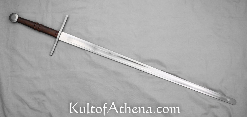 Solid. Definetly worth the money. It held up in some fighting in harness and handled a fight against an Albion with only minor nicks up and down the sword. The center of balance is just a little high for my taste, but once the blade starts flying I hardly notice. You need to be careful on the thrust with this one. There is very little bend. Overall a very pretty sword that holds up well in combat.