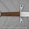This was the first sword I’ve ever purchased, and I can say I’m pleased with how it feels and handles. There are a few things I could nitpick at, like the cross guard not being fully centered, and the tiny chip on the base of the blade where it meets the cross guard, or the residue of brazing on the tang where it goes through the pommel – but those blemishes are to be expected from a hand crafted blade. One thing I would change about the sword is reducing the size of the ring pommel and reducing the amount of metal in the blade to make it more accurate to historical examples. Other then that I’m very delighted to own this sword and it’s features give it character.
