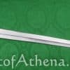This Gallowglass longsword has a blade forged from EN45 high carbon steel and its edges are thickly blunted and at least 2 mm in thickness to make it suitable for sport and stage combat. A shallow hollow-ground cross section of the blade maintains durability whilst reducing some weight. The guard and pommel are fashioned from steel and the tang is peened over the pommel. The well-contoured diamond shaped grip provides a secure holdfast to the sword whilst allowing its bearer to intuitively judge his edge alignment from the handle – it is crafted from wood and bound in finely stitched and fitted leather.