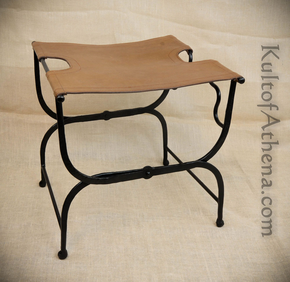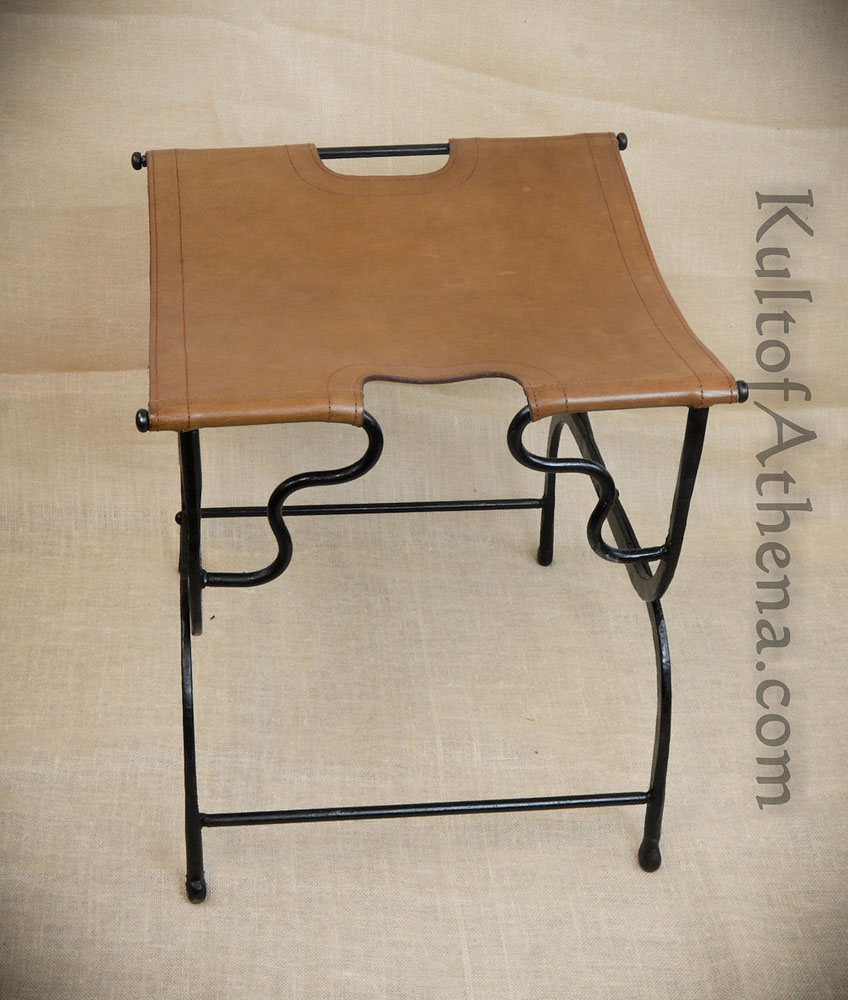 Iron Folding Stool with Leather Seat – Deepeeka