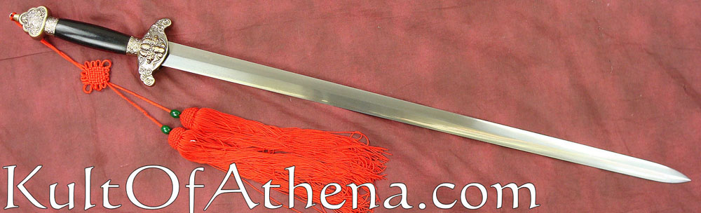 iron tiger dog jian I also brought this sword a while ago, to address the comment in above review about cutting paper I had no problem cutting any size of paper also cut different water bottles and two matts with pool nodle inside with out any problem.If you are looking for a good priced jian with folded blade blade this is the one.