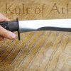 This blade’s a beast! The second sword I owned. This one’s an absolute tank. I had to sharpen it myself to start getting clean cuts, though the factory edge is better than a sharpening service, it’s still not quite sharp enough to cut very nicely. Even though this blade is short and quite light, the recurve shape and longer handle allows you to get enough leverage for powerful slashes! After accidentally cutting off a plank off of my practice stool, I got very confident in the build of this sword as it was still rock solid and… Abused it by slashing into the plank directly on. It took it quite well, not even really dulling the blade and the construction is still solid! Would make a great woods machete. If you have an interest in Phillipino blades or Kopesh shaped swords, this one is worth it!