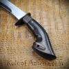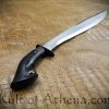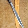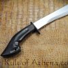 This Itak Tagalog sword by Traditional Filipino Weapons was crafted in the Philippines – it has a blade of sharp 5160/D2 high carbon steel – it has been tempered to a hard 58-60 HRC. The grip is of a native carved wood with a ridged back for an improved grip. The grip has been carved to fit the natural curvature of the hand and the placement of the fingers. The grip is surmounted by a dark metal guard. The blade has been securely riveted into place with a brass rivet.