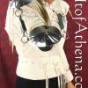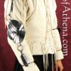 This pair of Jack Chains are crafted from 18 gauge high carbon steel that has been both riveted and welded together and articulated by its rings. It has been blackened on the inside of the plates. Comes with a set of leather ties. The Jack Chains have been demonstrated on a gambeson (15th century arming doublet). The gambeson is not included. Before attaching these jack-chains to a gambeson it is recommended that the inside of the plates be cleaned and de-greased to remove the rust-prevention oil on them – the oil may dirty a gambeson if the jack chains are not cleaned.