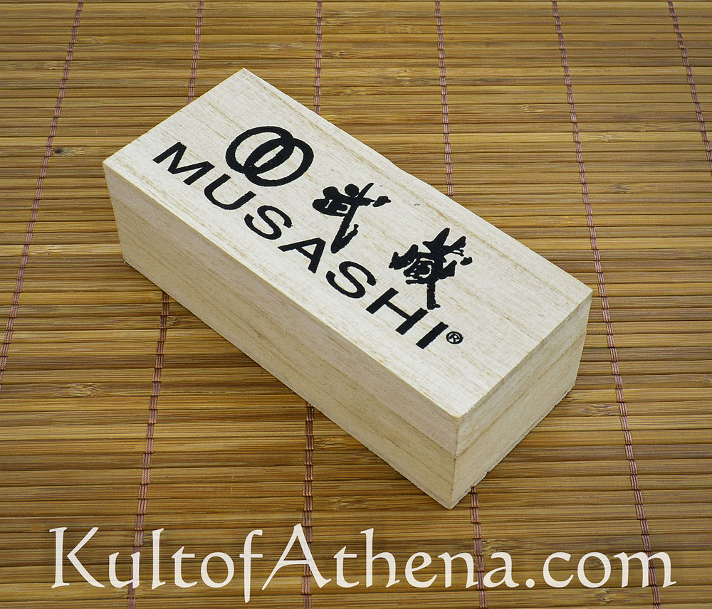 Also included is a Uchiko cleaning powder ball, Choji sword oil, a pair of bamboo Mekugi handle pegs and wiping cloths.