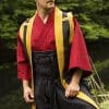 The Epic Armoury Jin Baori is a traditional open overcoat to be worn over a high-ranking samurais armour. Reaching from the shoulders to the mid-thigh and edged with broad golden bands along the collar and hem, this handsome garment adds detail and interest to an Asian-inspired costume. Fit shoulder armour outside the Jin-Baori by threading straps through the four eyelets located on the back and front. Each eyelet is clearly marked by golden edging, adding strength and aesthetic appeal.