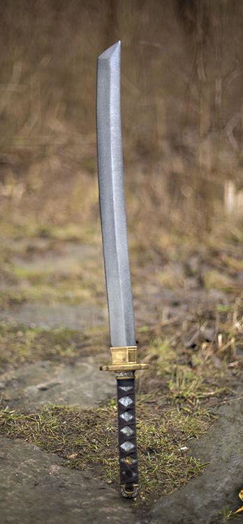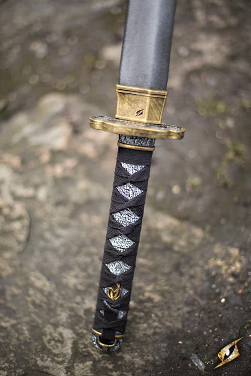 Epic Armourys Katana is a latex-hybrid longsword favoured by both deadly ninja assassins and samurai alike. The sword is 85 cm from tip to pommel with a 55 cm straight, single-edged blade, handpainted to look like real metal. A small oval crossguard protects the 20 cm handle, cast and painted to look like fabric bound in menuki-style.