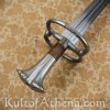 The iconic sidearm of the ostentatious Renaissance Landesknecht mercenaries, the Katzbalger was purpose-designed for a close-in melee between entwined pike and halberd formations. This example by Dragon King is responsive and agile with a broad blade which will chop and hack with great efficiency. The blade profile is tapered just enough to make it a capable thrusting sword as well. A large S-guard affords a wide plane of protection to the hand and forearm without adding excessive weight.