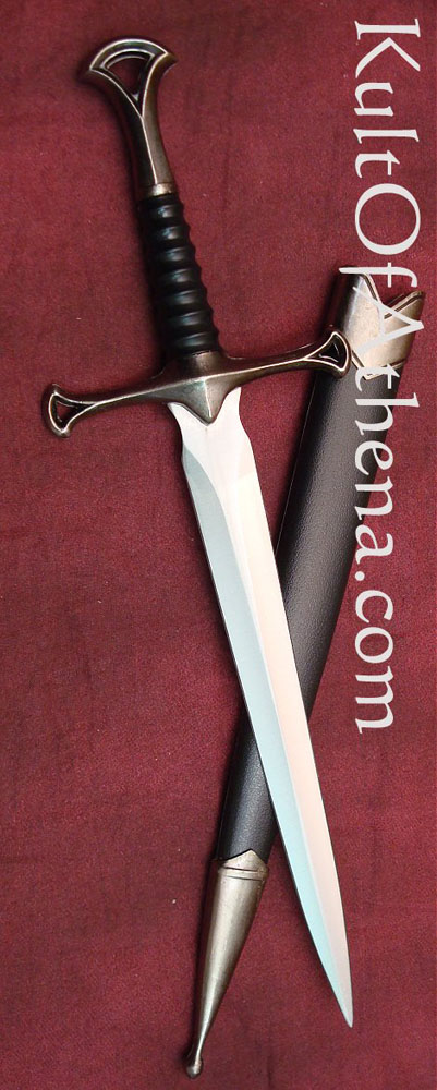 Shiny and parts are very obviously plastic (the fake leather pattern is only on the sheath) but good quality for the price.