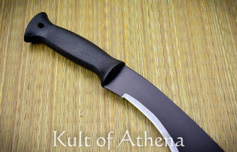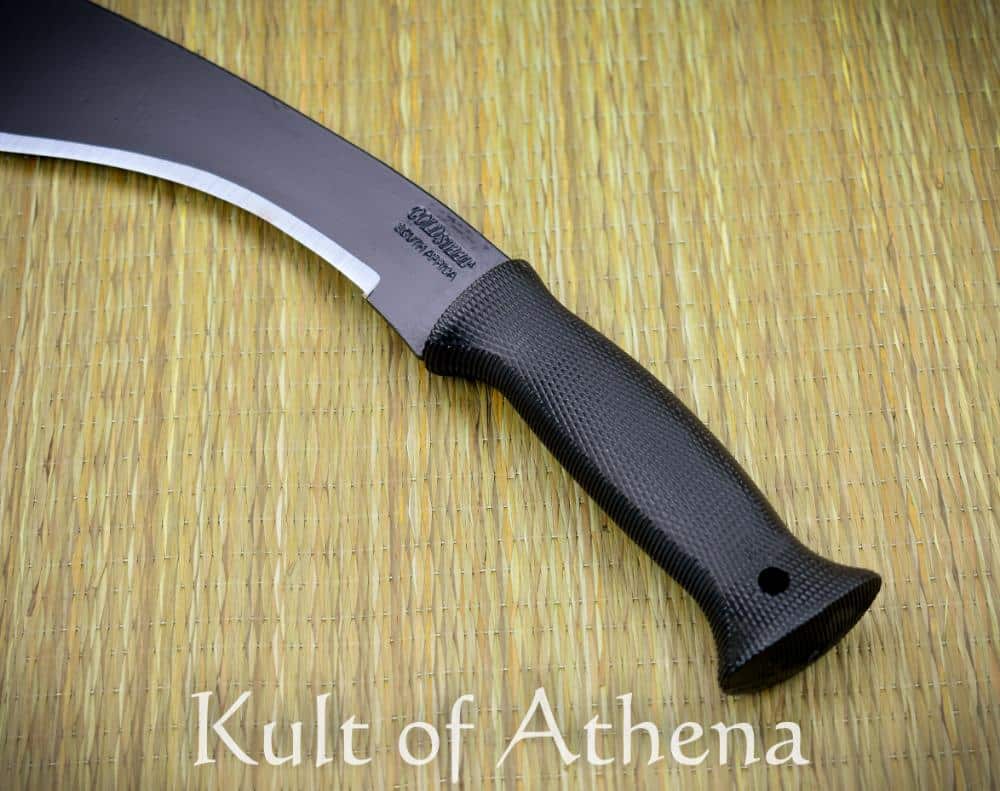 The Kukri Machete is 18 3/8” overall in length and has a thirteen inch blade. It has a polypropylene handle and comes complete with a sturdy Cordura sheath. It is a solid value, ready for long, hard work.