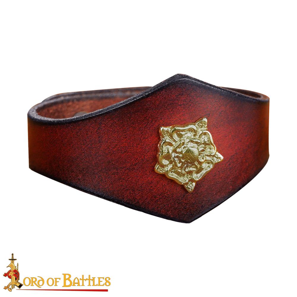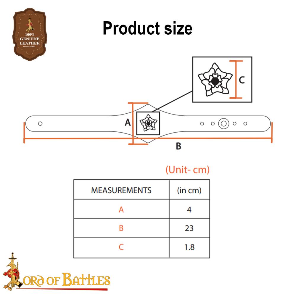What is better than an accessory, beautifully adorned with a historical mount that makes it a must-have for you! The Tudor rose pure brass mount added to this gorgeous wrist mount, not only looks stunning but is directly inspired by the badges worn under the Tudor dynasty. It has been known to be a symbol of unification of the two houses of York and Lancaster followed by the Hundred Years’ War! So get one to add the little historical detail for your next LARP, cosplay or any character from your favorite medieval fantasy universe!