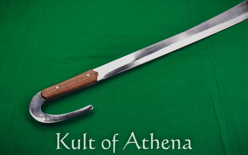 This Italian Beidana was handcrafted in the Czech Republic is crafted from a single solid piece of well tempered CSN14260 High Carbon Steel; its grip is two halves of carved wood which are riveted directly to the thick tang of the weapon. Tough and sturdily constructed, this Beidana is ready for repeated blade-on-blade sport and stage combat.