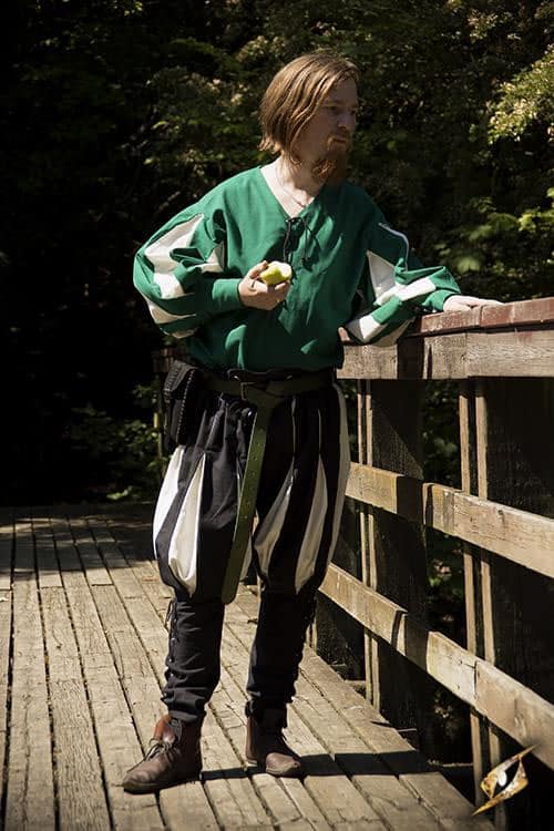 Epic Armourys Landsknecht Shirt is a hip-length shirt with baggy sleeves and vertically cut colours, most often associated with the wealthy men of the Renaissance. Made from durable heavy cotton, this shirt has a broad neck which can be laced open or closed. The contrasting puff-and-slash sleeves end in narrow cuffs at the wrists, which are adjusted by tightening its reinforced cotton cord to get the best fit.