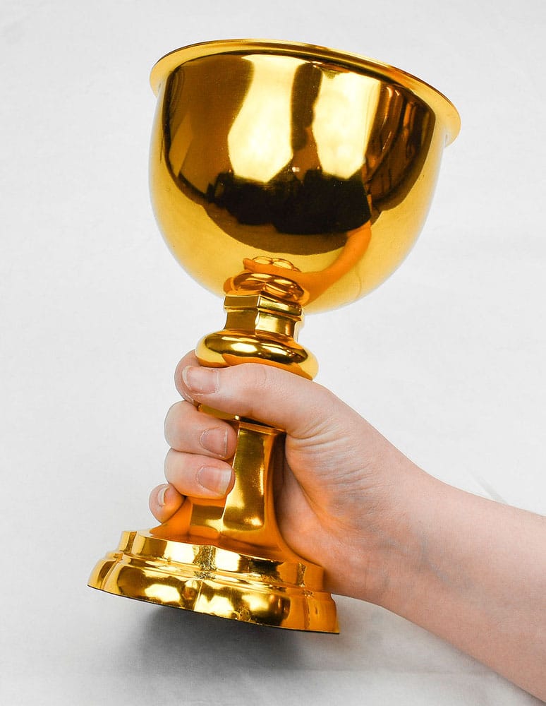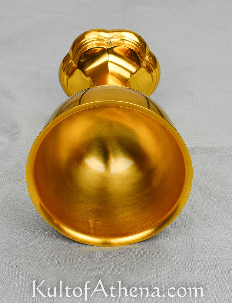 This large Medieval Chalice is ready for your next feast and its substantial capacity allows for it to be filled with enough wine, ale or mead for truly Bacchanalian festivities. It is durably crafted from stainless steel and plated with bright brass for a gold-like appearance and the Chalice itself has some authoritative heft! Its grand size certainly establishes your seat at the table to be one of great import. Not only suited for feasts this chalice makes a great Grail quest prop for your event or LARP.