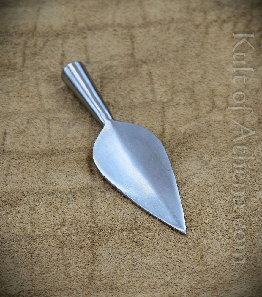 This socketed leaf-shaped arrowhead is crafted from high carbon steel and is unsharpened.