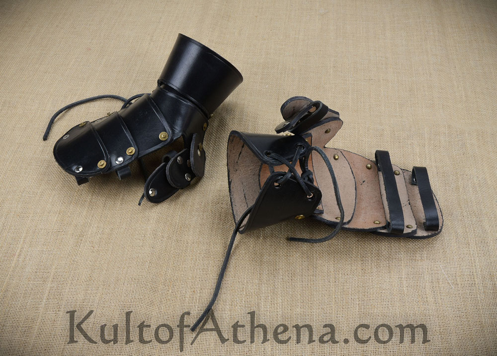 I bought the leather clamshell gauntlets. Very sturdy construction. Thick leather. With riveting. Definitely need internal gloving for up against the leather. Definitely some good hand protection for beginners