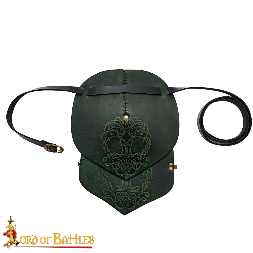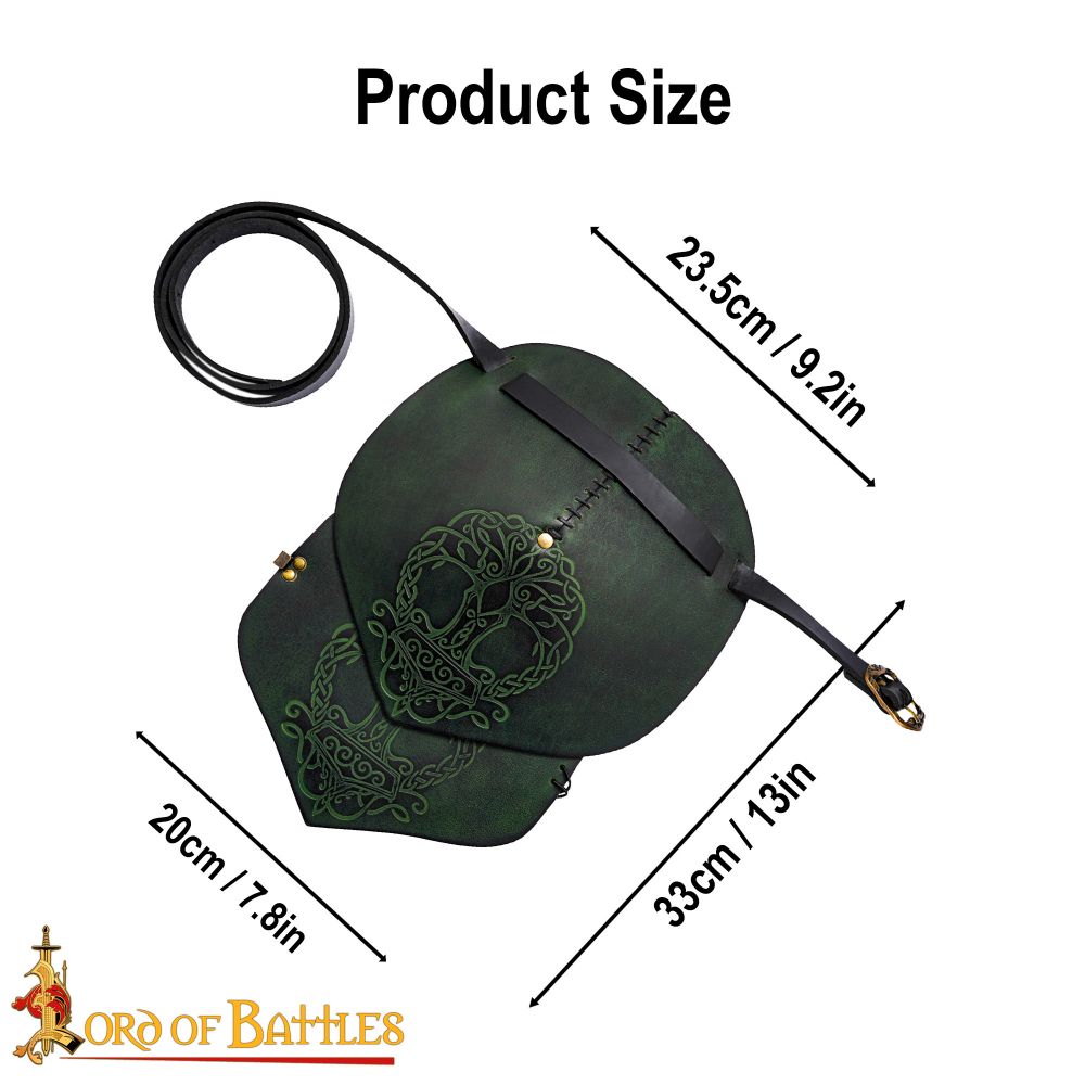 Leather Pauldron with Norse Yggdrasil Mjolnir Design – Green – Lord of Battles