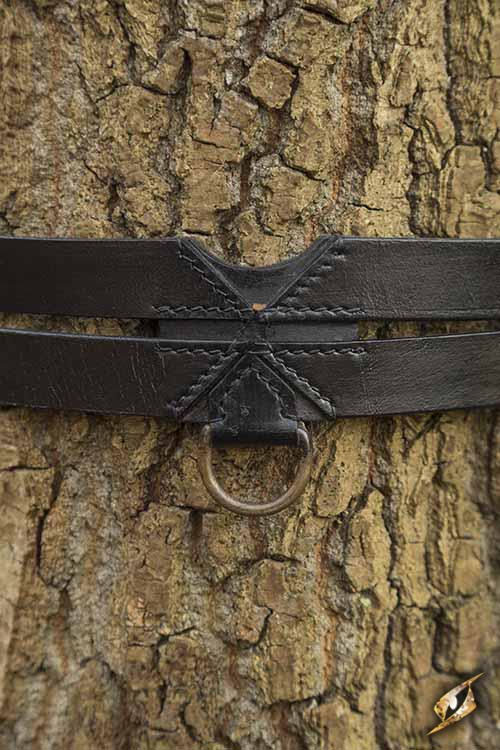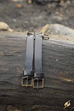 Every lad needs a good leather belt. This belt is a great accent to any outfit, for any character, in any period from Medieval to Renaissance. Hang your sword frogs, tankard straps or pouches from this belt to help carry around the everyday necessities. Our Twin Belt is made of two smaller belts that are attached in 4 points along the length of the belt. There is a d-ring at each connecting point which you can hang or clip on any accessories you may have, like tankard straps, dungeon keys or pouches. One size.