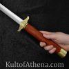 Still speaking of the scabbard, the lower, smaller ring on it was loose on mine. But that’s because it’s actually a friction fit, so all that was needed was to slide it back up and put some good pressure on it, and it’s secure. So, much like a tomahawk head. You could put glue up there but it would be really easy to make a mess out of your beautiful scabbard doing that. It’s fine as-is; no need for that.