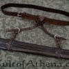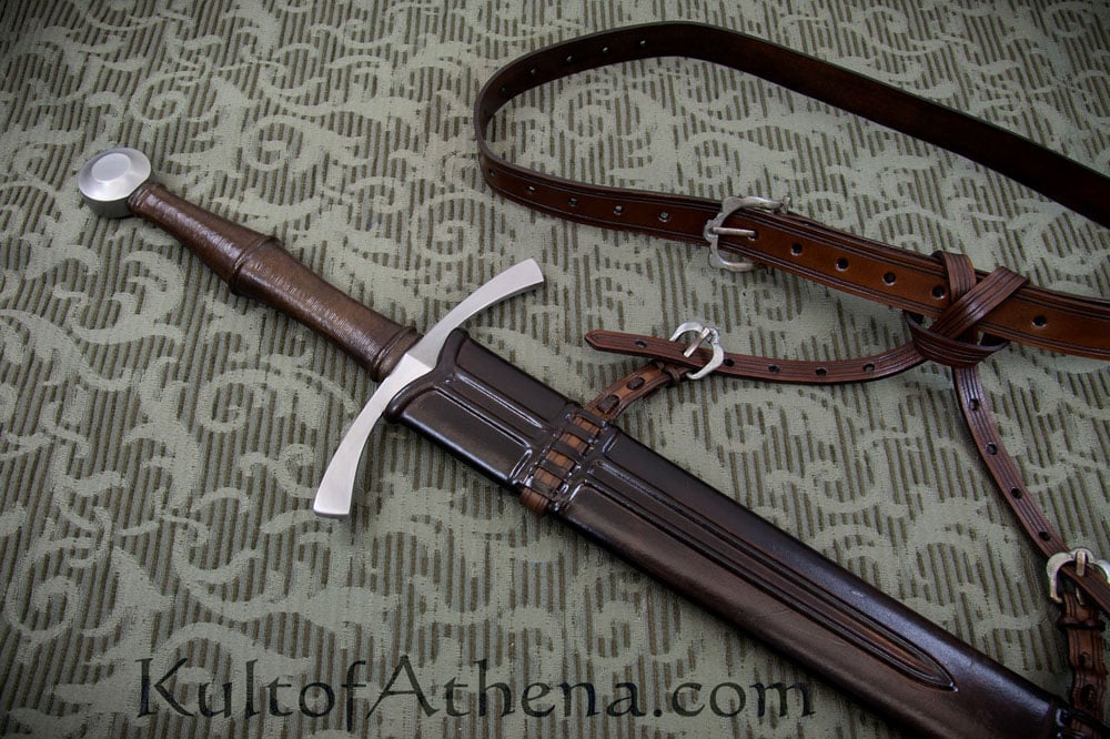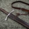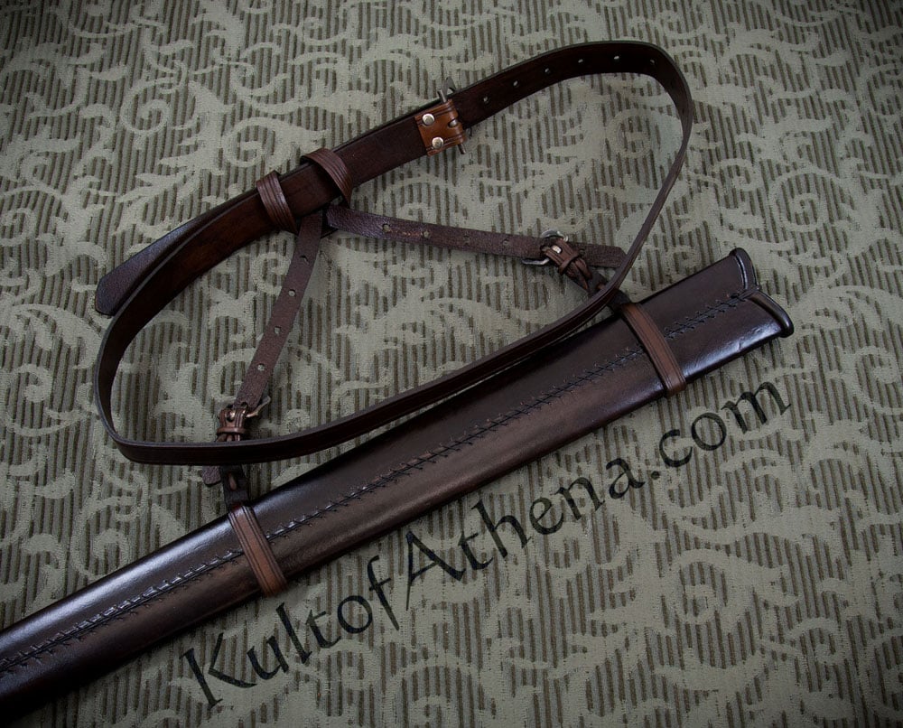 This scabbard does come with a sword belt created from thick, yet supple leather. The belt is buckled and is finished with sword hanging straps that allow for the fit of the scabbard to be widely adjusted.