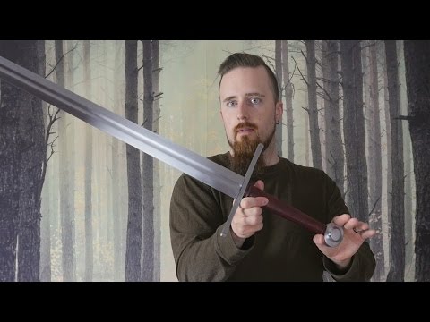 The Type XIIIa is crafted by USA swordsmith Stephan Lockwood. The blade is sharpened 6150 high carbon steel that was finished to possess a tempered hardness of 52-53 HRC. The hilt fittings are cast from mild steel. The poplar wood grip was wrapped in cord and overlaid with an outer layer of dyed leather to finish the grip.