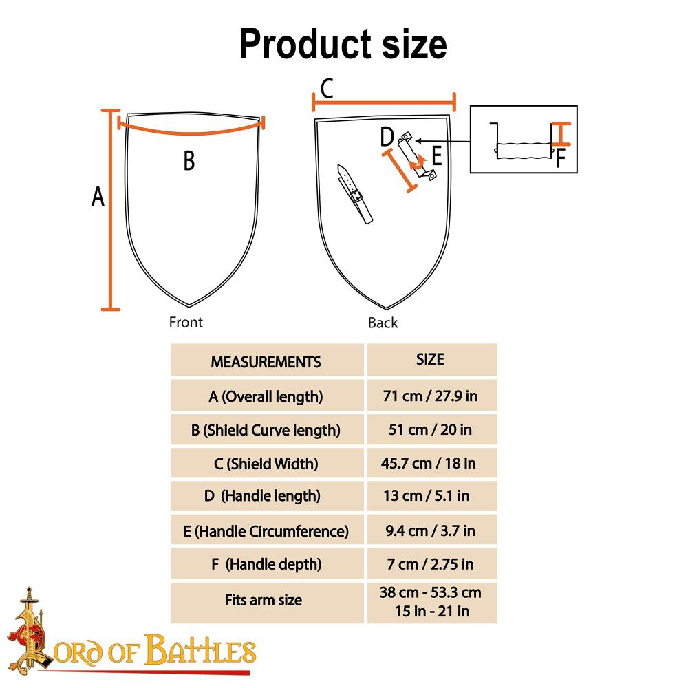 Home   »  Shields   »  Medieval Shields   »  Lord of Battles – Antiqued Medieval Steel Heather Shield