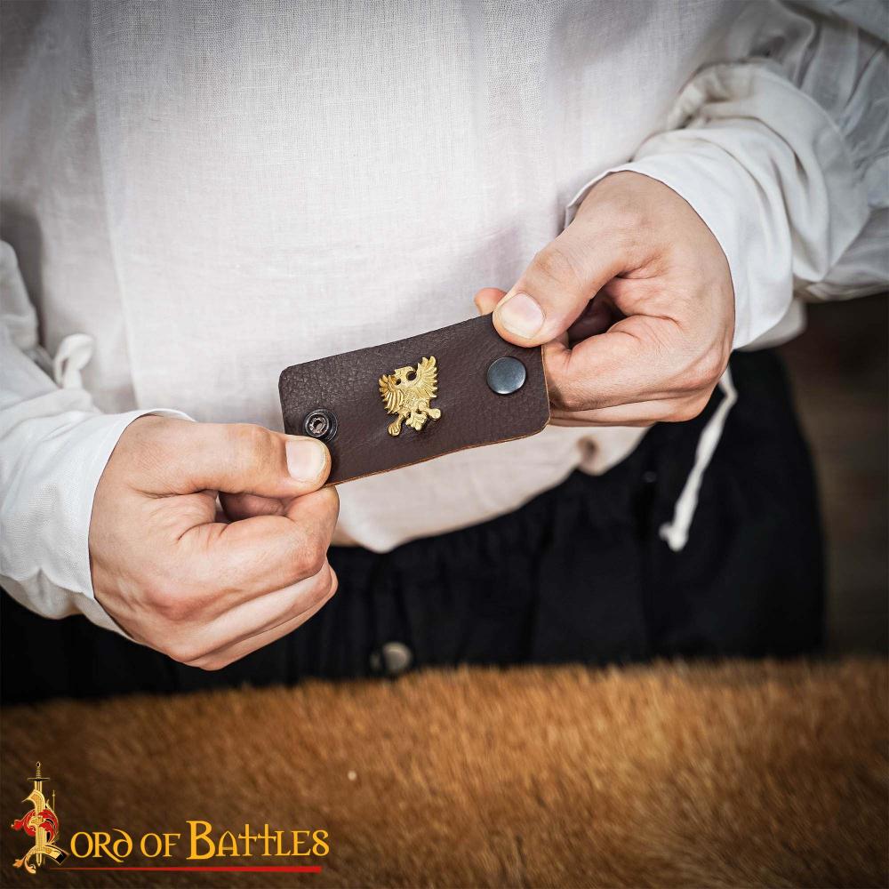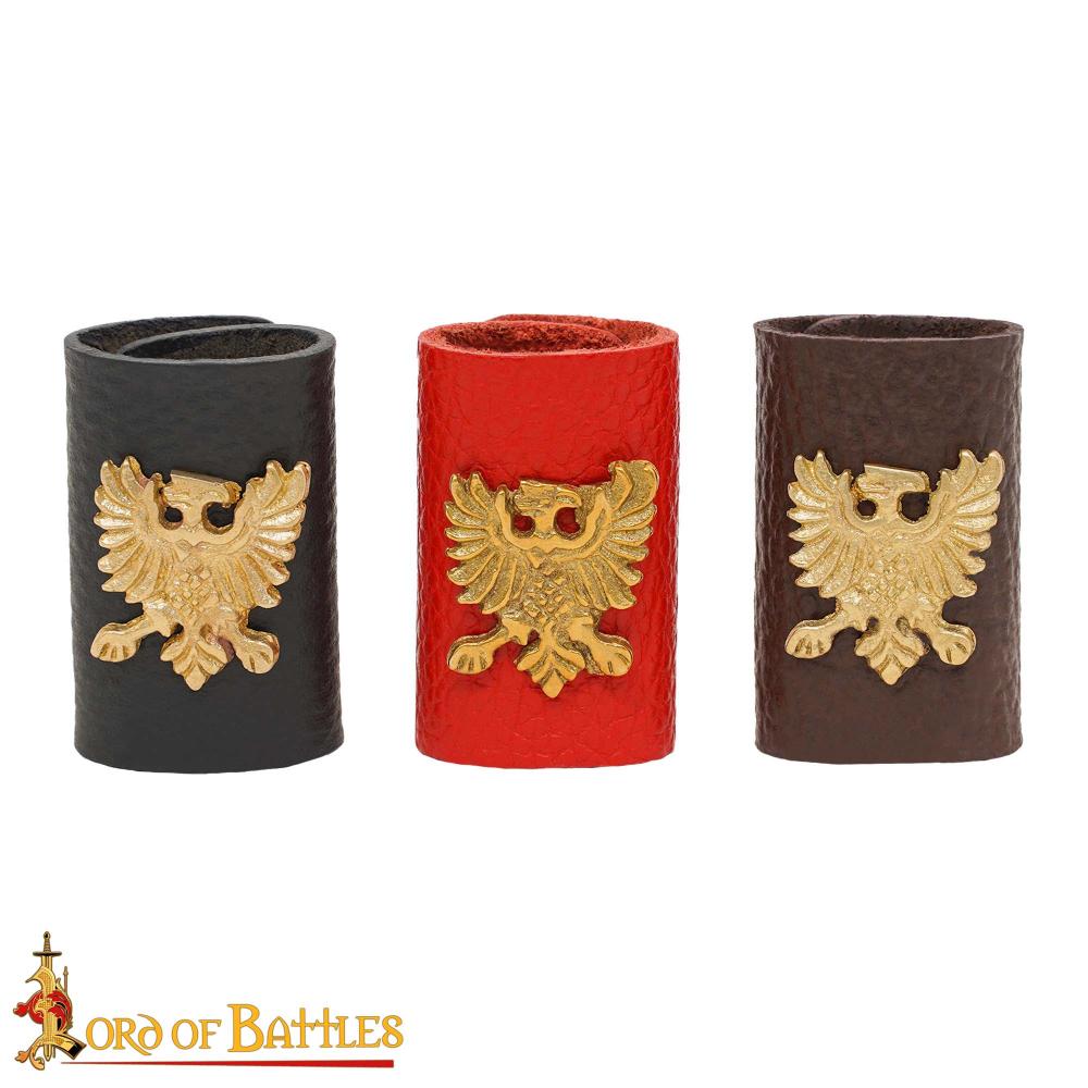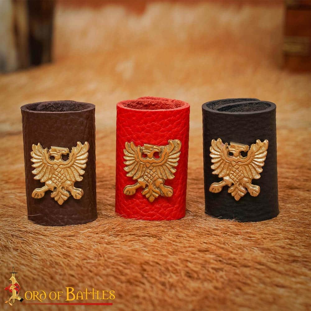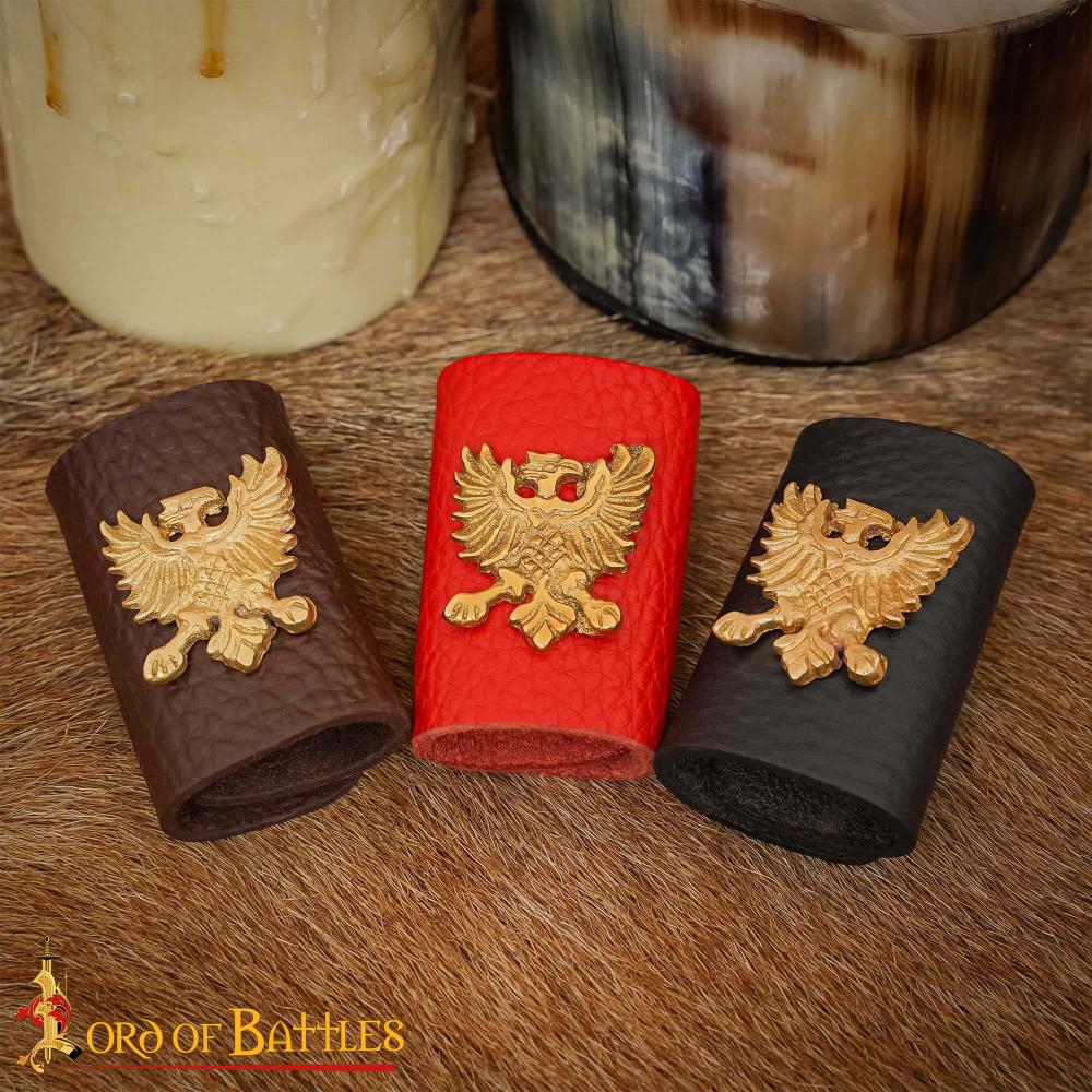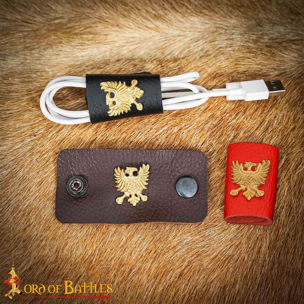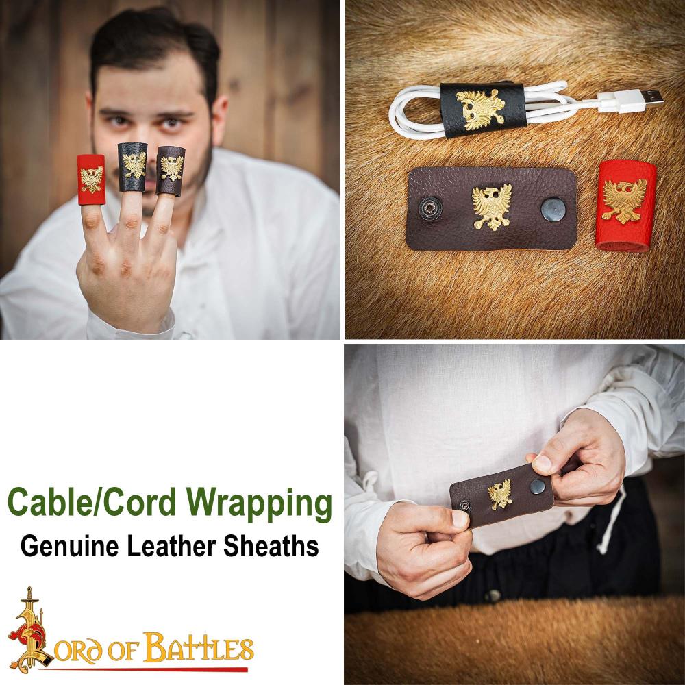Why go for the flimsy and less historic ways to bind those annoying cords together, when you can have these well adorned, precisely crafted cable wrapping leather sheaths? Each is crafted with an ideally suited design, ornately adorned with a visually attractive pure brass heraldic eagle motif.