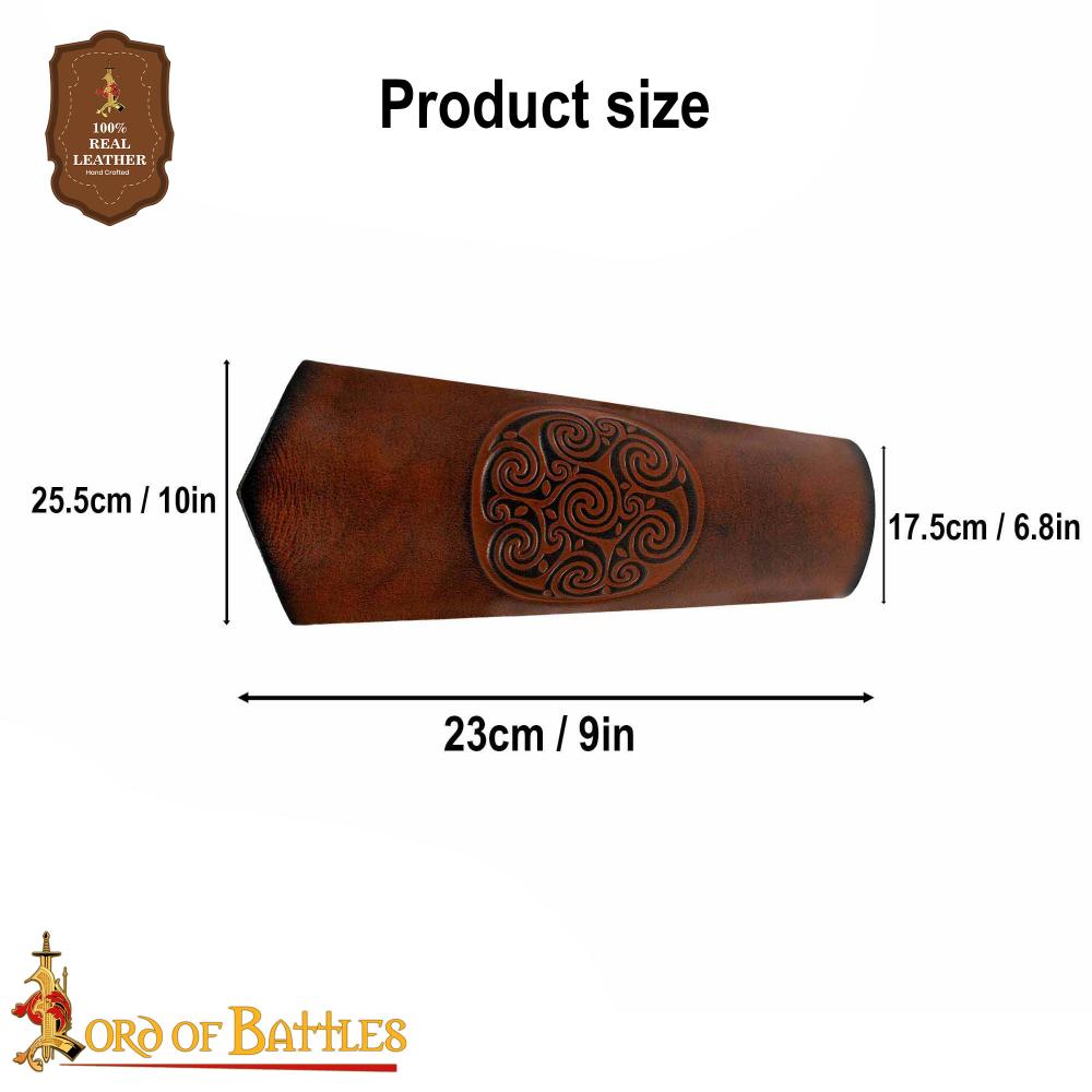 Be the first to review “Celtic Spiral Embossed Leather Bracers – Brown – Lord of Battles”