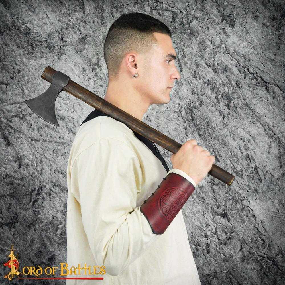 Celtic Spiral Leather Bracer Set – Red – Lord of Battles