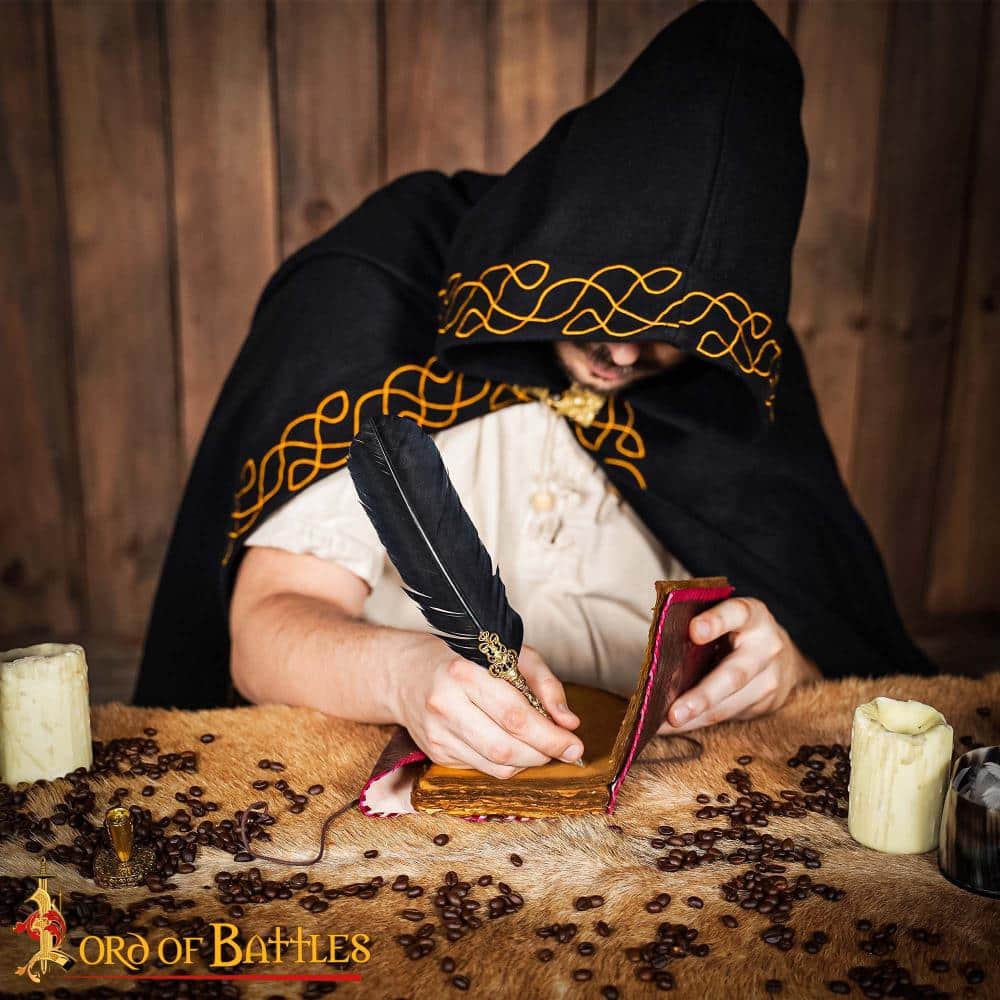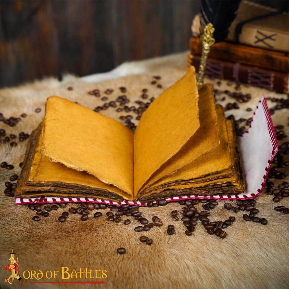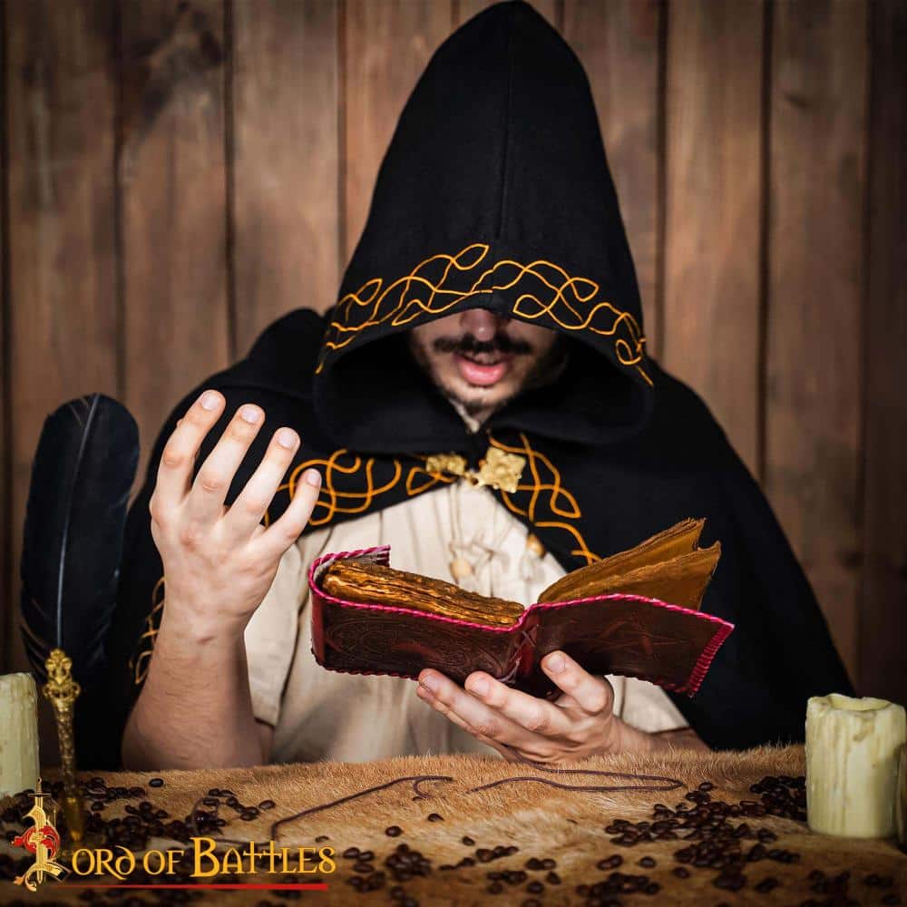 This handmade and richly embossed leather journal is a fine starting point for your spellbook, alchemical recipes or simply as a journal for your thoughts and experiences. Handcrafted from genuine, top-grain leather, it comes with a set of 78 antique handmade pages with perfect deckle-edges, strongly bound together. Its dimensions are (7 X 5) inches.