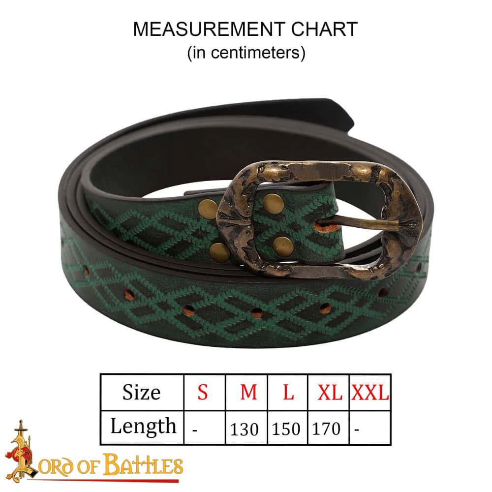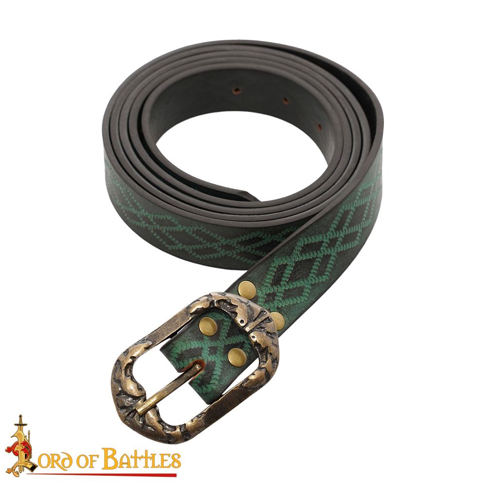Fantasy Ranger Handcrafted Genuine Leather Belt – Green – Lord of Battles