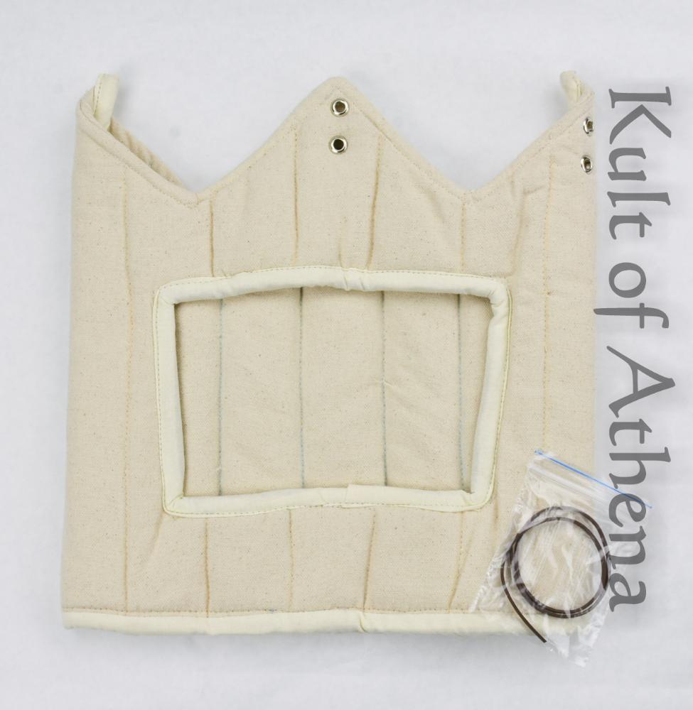 This full padded helmet liner is ready to pad out the top and sides of your Great Helm or Great Bascinet helmet and is constructed from durable and tough canvas cotton cloth in a quilted pattern with a padded interior. Leather lacing for the internal suspension at the top is included.