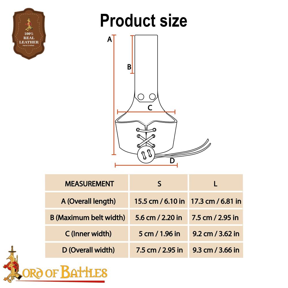 Right next to your mighty blade rests your mead horn in our richly crafted horn holder. Accompanying you through unventured roads and quests, you can be sure that our horn holder will hold your favourite drinking horn right by your side in times when even your kin stay back! Its unique embossed Celtic Triquetra motif gives it an elegant detail, complementing your fantasy ranger, Viking warrior, or even an elven costume for your next LARP or cosplay!