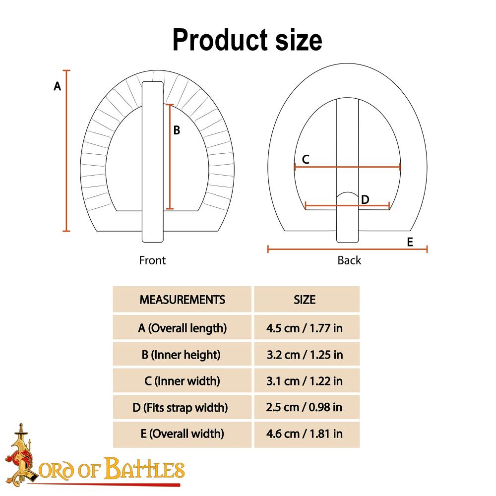 Their SOLID CAST IRON construction allows them to last long, event after event.  The buckle is 4.5cm long and 3.8cm wide, ideal for a 2.5 cm wide belt.