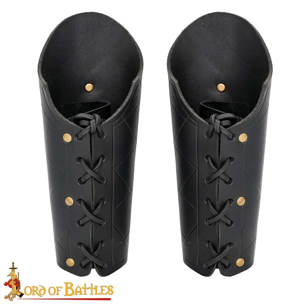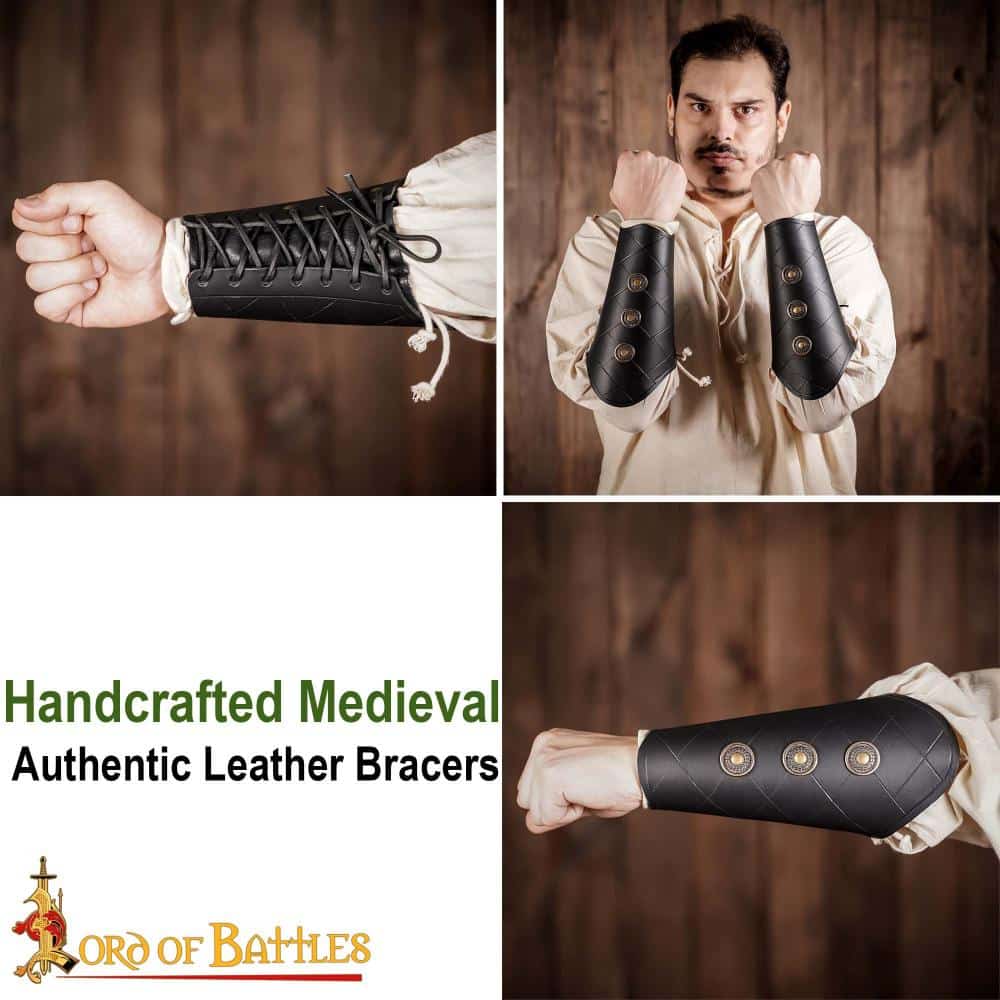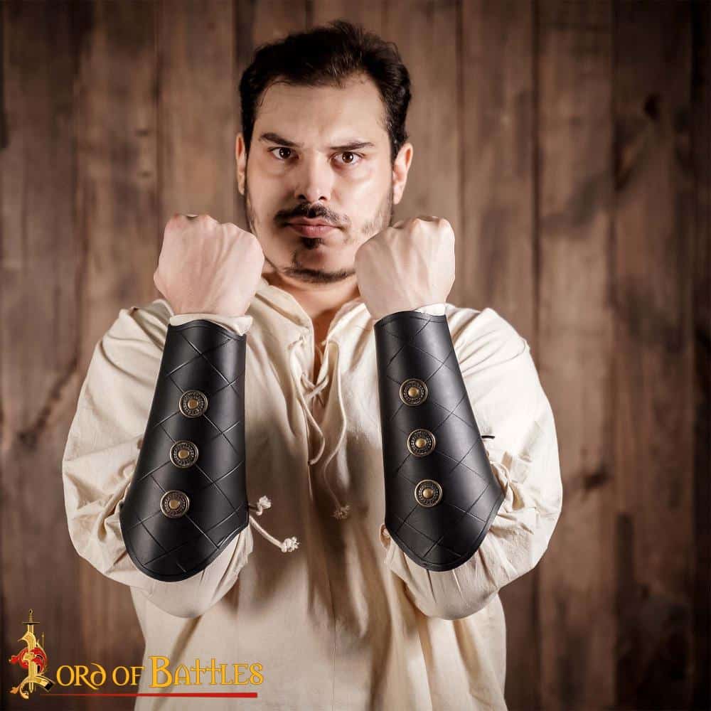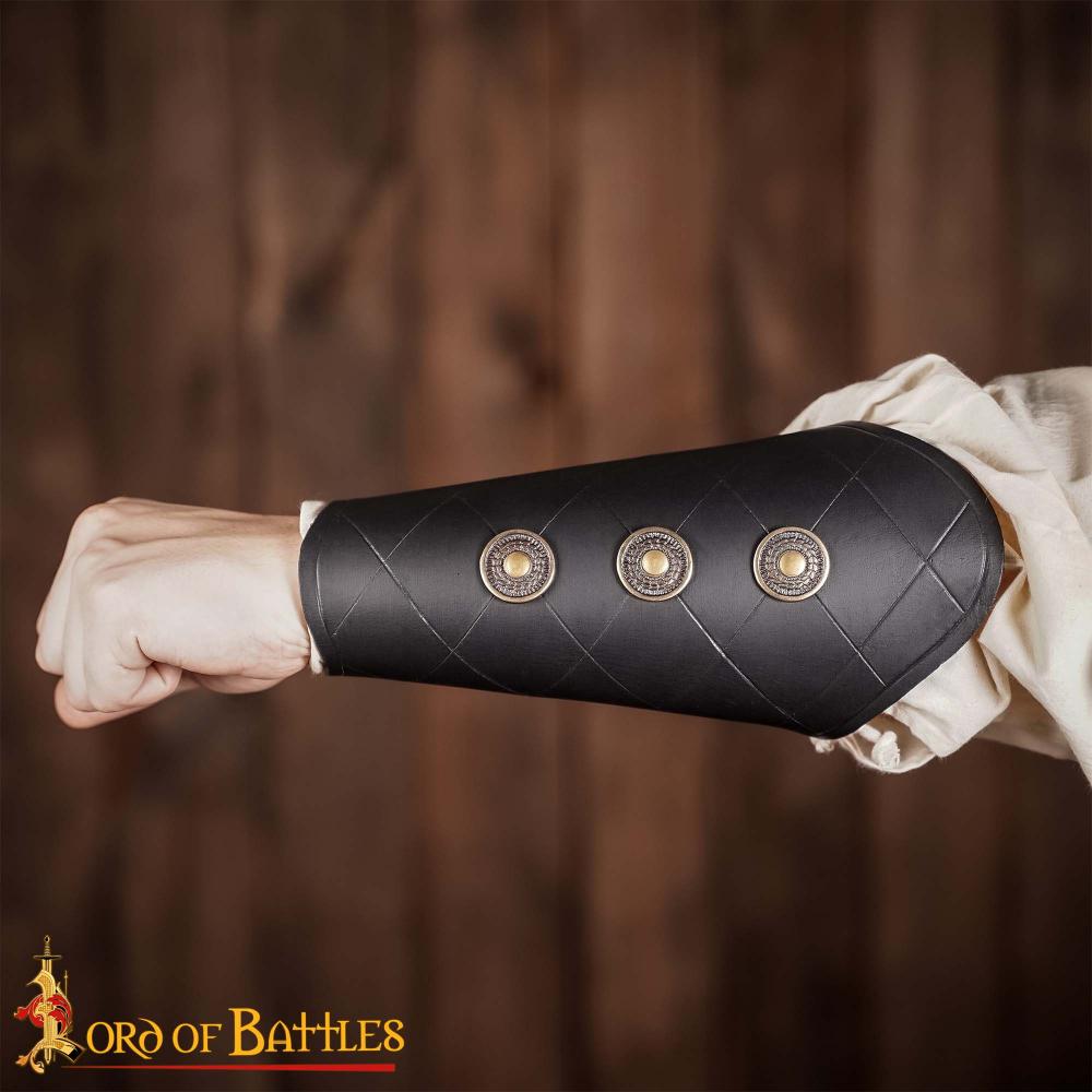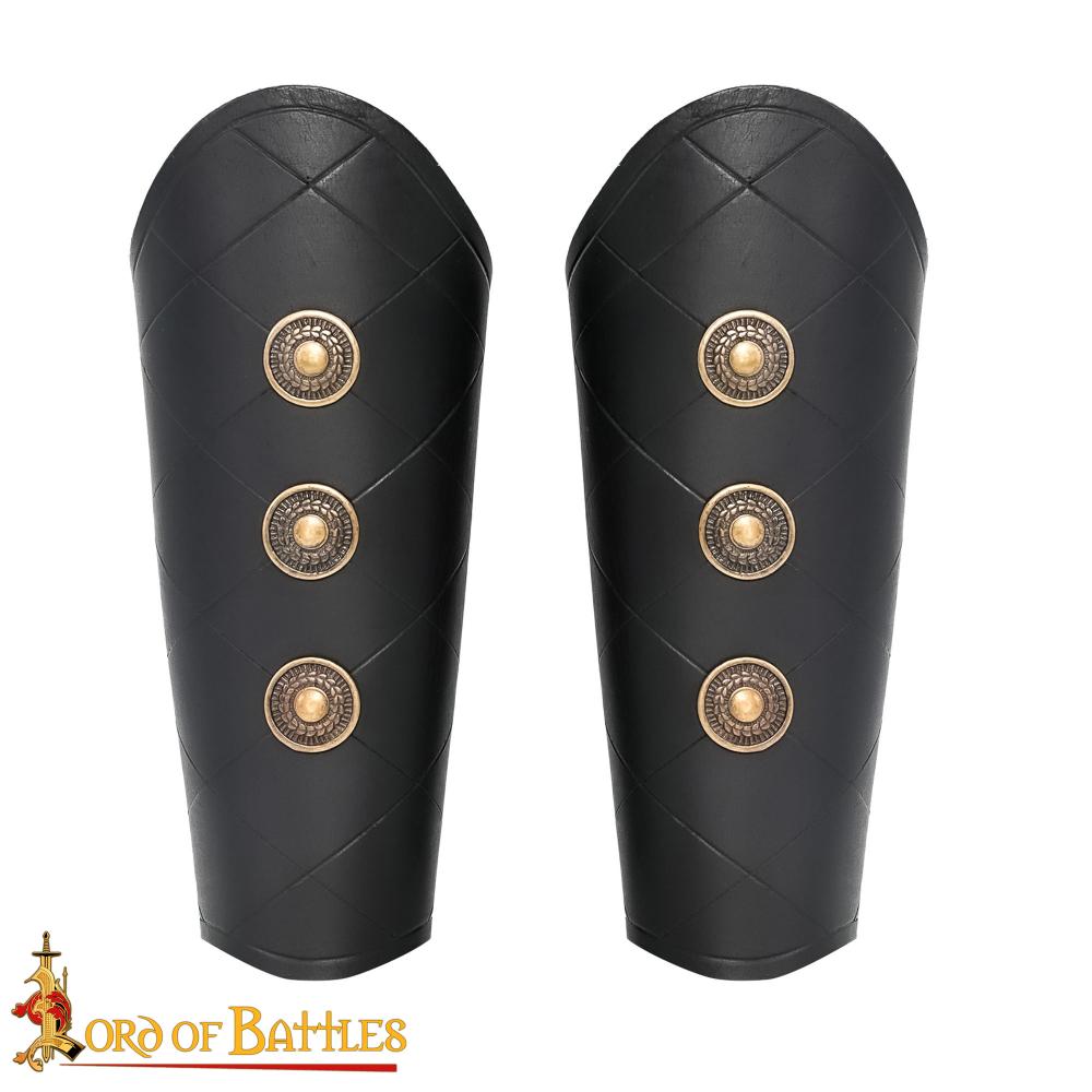 Leather Bracers with Antiqued Brass Medallions Set – Black – Lord of Battles