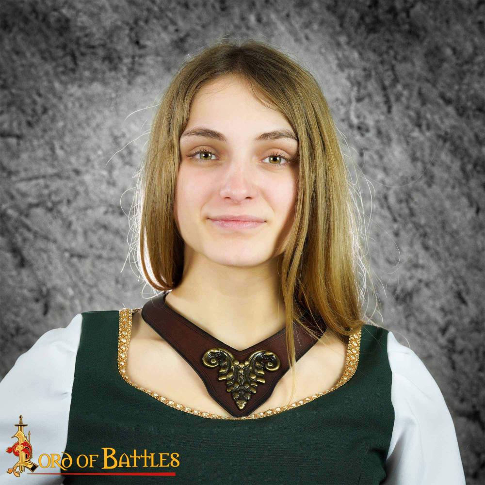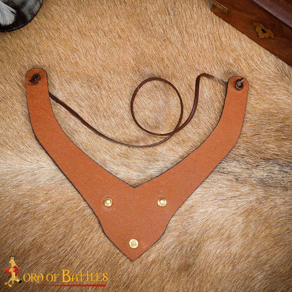 This leather neck collar is a great way to add a final touch of embellishment to your kit or character and is made from tough and thick genuine leather. Its central ornament is well cast in antiqued brass and is crisply detailed.