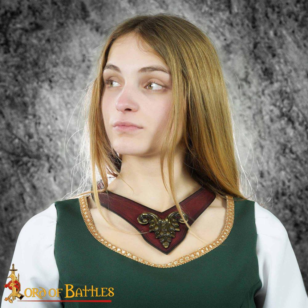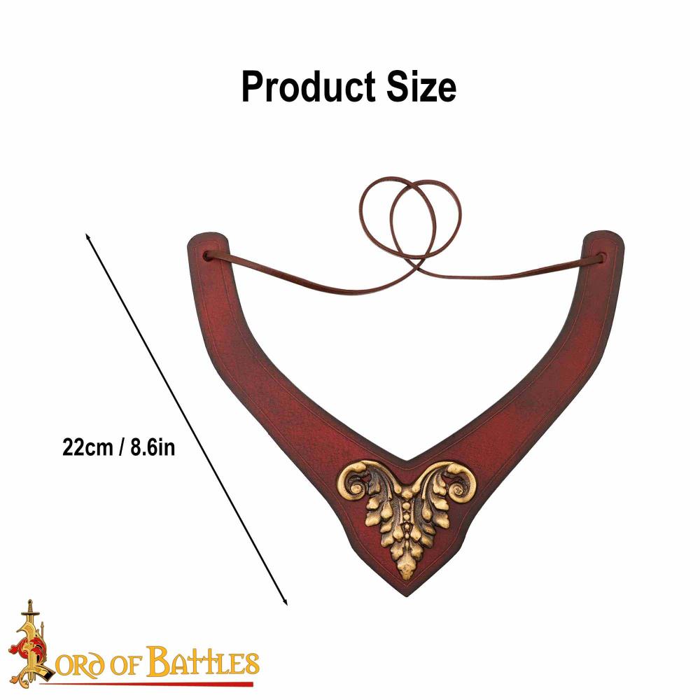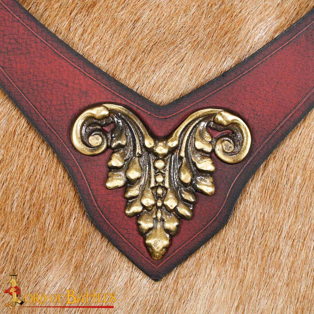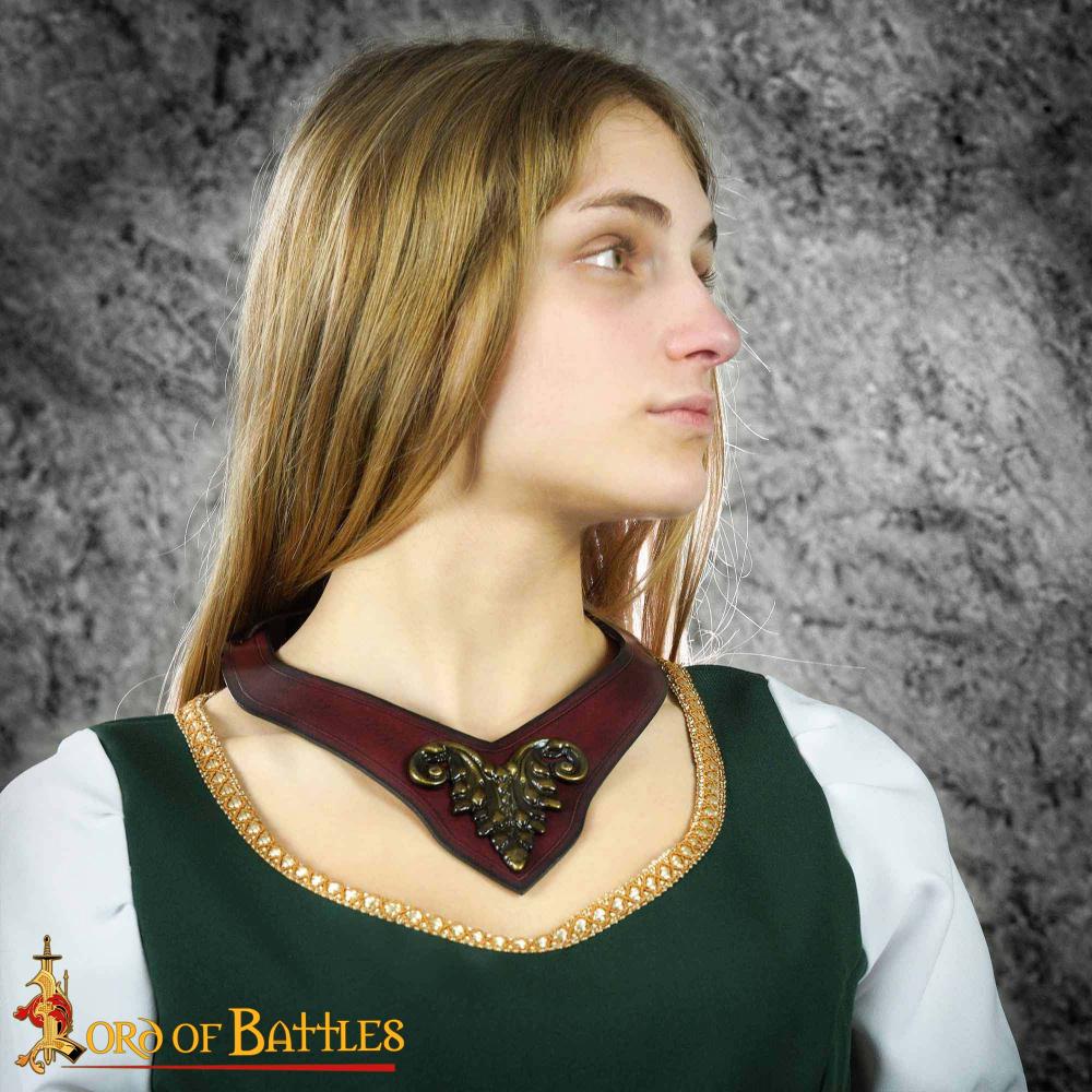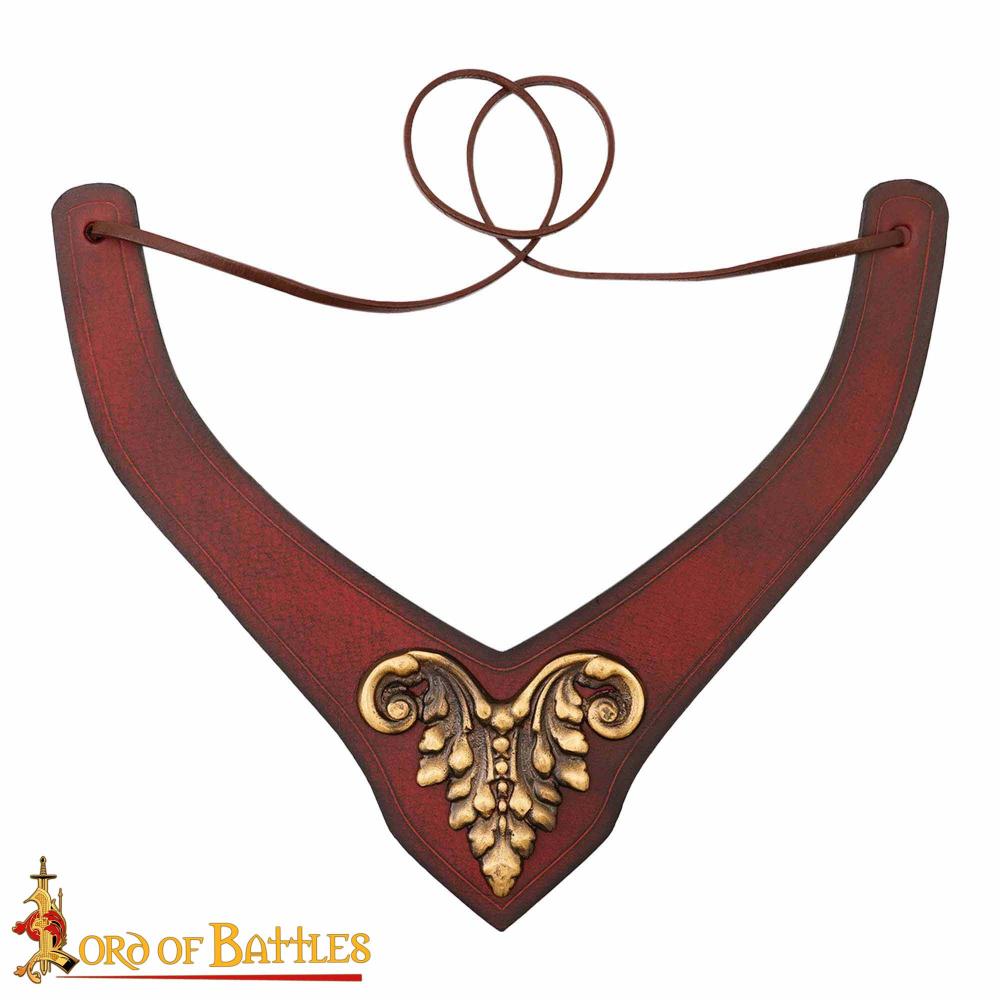 This leather neck collar is a great way to add a final touch of embellishment to your kit or character and is made from tough and thick genuine leather. Its central ornament is well cast in antiqued brass and is crisply detailed.
